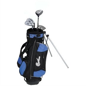 Package includes: Clubs: Driver/fairway wood with extra loft for easy hitting (36"). Oversized Ti-Matrix perimeter-weighted irons with large, forgiving sweet spot - 7 iron (32"), 9 iron (31"), White Ball Putter (30") & longneck headcover. Stand Bag: DELUXE junior stand bag with double shoulder strap, 4 way divider, 4 exterior pockets, umbrella holder, Velcro glove tab & rain hood. Graphite Shafts- Junior Flex. Soft wrap grips. For Boys & Girls between 4-8 years of age and up to 4'6" in height. Brand new.